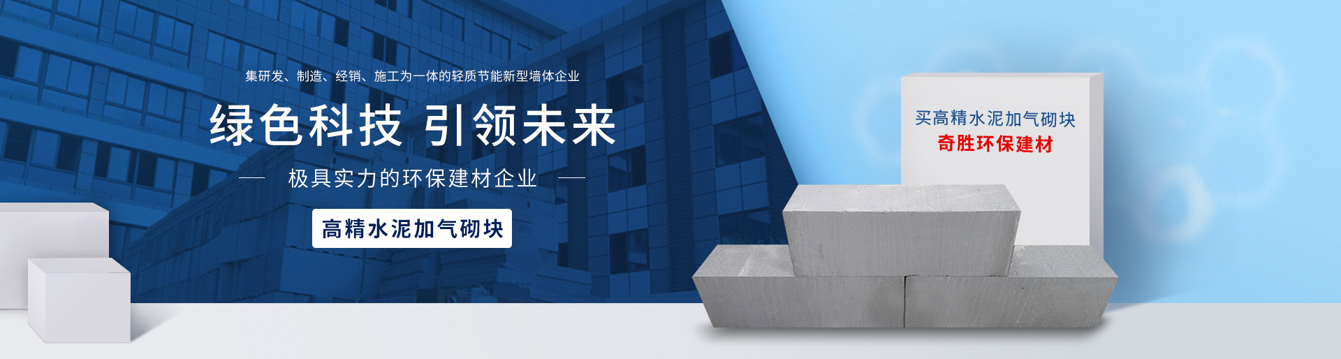 福建奇勝環保建材科技有限公司隨著可開發利用的土地資源日趨減少及節能降耗意識的增強,實心粘土磚逐漸在全國各地被禁止使用,非粘土類新型輕質墻體材料成了較為理想的替代產品。為適應建筑市場的需求,福建奇勝環保建材科技有限公司研發生產了巖安牌系列產品:巖安牌新新型高精水泥加氣砌塊(凹凸型)、巖安牌益膠泥等。 巖安牌新新型高精水泥加氣砌塊(凹凸型)是在普通加氣磚的基礎上,通過分子分析,添加進口防水劑,經多次的試驗、檢測,研發生產出強度更高,表面更平整,防水性能更好的新型新型高精水泥加氣砌塊。而后通過公司的研發,設計出開槽流水線機械并生產出帶凹凸槽的高精加氣砌塊,把開槽后后生產的廢渣,通過沉淀,洗沙機振動水洗,選出40-150目細沙,并經過電加熱烘干機烘干,通過提升機提升至儲料罐,最后輸送到益膠泥攪拌機(添加纖維素、膠粉、木纖維等),生產出高質量的專用高精加氣砌塊粘結劑——巖安牌益膠泥。 巖安牌高精水泥加氣砌塊(凹凸型)具有輕質、實心、薄體、高強度、隔音、隔熱、防火、防潮、耐老化、吊掛力強、抗沖擊等特點;可釘、可鋸、無環境污染、可直接開槽埋設線管,施工簡單等優點;能夠減小墻體飾面工程量,縮短墻體施工周期;增大建筑物的實用空間、減輕主體結構的負荷、減少結構工程投資、降低綜合造價,廣泛應用于各類建筑的非承重隔墻。 奇勝秉承“綠色科技,引領未來”的企業理念,將為人類追求更加低碳節能環保的生活環境樹立標桿。